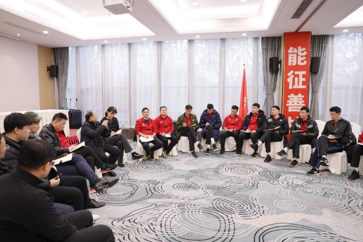 中午劉國(guó)永副局長(zhǎng)召集復(fù)合型團(tuán)隊(duì)人員開座談會(huì),各團(tuán)隊(duì)成員紛紛表示很高興來(lái)到本次訓(xùn)練營(yíng),非常珍惜此次學(xué)習(xí)機(jī)會(huì),相互配合,希望用自己的專業(yè)知識(shí)為隊(duì)伍服務(wù),助力國(guó)家女排再創(chuàng)輝煌。國(guó)永副局長(zhǎng)再次強(qiáng)調(diào)了訓(xùn)練營(yíng)教練團(tuán)隊(duì)、科技團(tuán)隊(duì)、體能團(tuán)隊(duì)的使命任務(wù)和責(zé)任擔(dān)當(dāng),介紹了新周期科技助力帶來(lái)的變化,并邀請(qǐng)到美國(guó)生物力學(xué)博士拉爾夫在晚上為全體復(fù)合型團(tuán)隊(duì)成員授課。最后,他要求全體復(fù)合型團(tuán)隊(duì)成員,拿出全新的姿態(tài),強(qiáng)弱項(xiàng)、補(bǔ)短板,鼓勵(lì)教練員加強(qiáng)學(xué)習(xí),多溝通交流,為落實(shí)總書記要求,建設(shè)體育強(qiáng)國(guó)而奮斗。