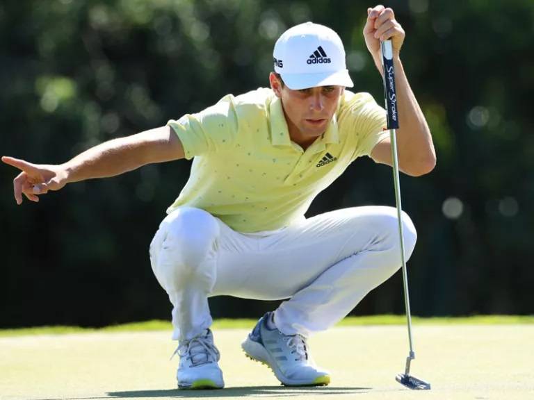 當(dāng)2019年,年僅20歲華金-涅曼贏得綠薔薇賽之后,他看上去還能容易地很快贏得更多的美巡賽事桂冠。涅曼的確在隨后的比賽中有一些機(jī)會(huì),但是每一次他都不能鎖定冠軍。上周日在里維埃拉鄉(xiāng)村俱樂(lè)部球場(chǎng)舉行的決賽輪中,涅曼雖然有一點(diǎn)重蹈覆轍的苗頭,但是他在最后的11個(gè)洞里還是穩(wěn)定住了形勢(shì),最終以2桿的優(yōu)勢(shì)拿下了捷恩斯邀請(qǐng)賽的冠軍。盡管涅曼是從頭領(lǐng)先到結(jié)束,成為了自1969年的希福德之后首位能在里維埃拉球場(chǎng)做到這樣壯舉的球員,但是他的奪冠之路并非坦蕩,哪怕他在前兩輪都打出了63桿,周六移動(dòng)日的68桿則使他以3桿的優(yōu)勢(shì)愜意地領(lǐng)先了楊,然而決賽輪中的前9洞里涅曼的發(fā)揮卻將領(lǐng)先優(yōu)勢(shì)跌至了僅有1桿。接著第一個(gè)轉(zhuǎn)折點(diǎn)出現(xiàn)了:4桿洞的第8洞,他在離旗桿110碼的位置打出一記飽滿的沙桿,球停在離洞杯7英尺的位置,接著涅曼推進(jìn),而楊在此洞吃到搏忌,涅曼的領(lǐng)先優(yōu)勢(shì)又回到了3桿。3個(gè)洞之后,比賽來(lái)到了標(biāo)準(zhǔn)桿5桿的第11洞,這位智利新星再次用到了沙坑桿,這一次他在離旗桿46英尺的位置直接切桿抓下老鷹球,將領(lǐng)先優(yōu)勢(shì)擴(kuò)展到了5桿。涅曼用的是Ping出品的新款Glide Forged Pro挖起桿,而他的劈桿則是Glide 3.0。除了這些關(guān)鍵擊球之外,涅曼的鐵桿表現(xiàn)在整個(gè)賽事中也很亮眼。他在攻果嶺得分環(huán)節(jié)統(tǒng)計(jì)中排在全場(chǎng)第一,用了Ping iBlade鐵桿領(lǐng)先了全場(chǎng)超過(guò)了7桿。iBlade鐵桿有著薄薄但卻靈敏的桿面,這樣的效果是基于其桿面上采用的從頭部到跟部的人造橡膠嵌入物。這種物質(zhì)使得桿面在擊球時(shí)富有彈性,還能抑制顫抖來(lái)產(chǎn)出舒服的擊球感覺(jué)。此外在跟部低位所安置的高密度的鎢制配重塊也起到了提升穩(wěn)定性的作用。在果嶺周邊,他的挖起桿的表現(xiàn)同樣不錯(cuò),在果嶺周邊得分環(huán)節(jié)中,涅曼排在全場(chǎng)第二位,領(lǐng)先全場(chǎng)平均超過(guò)5桿。此外,他的切推成功率達(dá)到了25中19,76%,位列全場(chǎng)第10位。其中以往涅曼的推桿表現(xiàn)并非是他的亮點(diǎn),比賽之前他的推桿得分環(huán)節(jié)統(tǒng)計(jì)也只有第154位,然而本場(chǎng)獲勝中推桿起到了重要貢獻(xiàn)。本周中他在推桿得分環(huán)節(jié)的統(tǒng)計(jì)中位列第25位,果嶺上的平均推桿位列第2位,而他的推桿則是Ping PLD Anser標(biāo)準(zhǔn)款,這款產(chǎn)品長(zhǎng)度為35英寸,桿頭角度為3° 。以上這些條件組合到一起造就了他盼望已久的美巡賽第二冠。