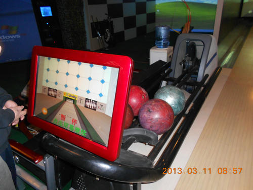 模擬保齡球,9萬(wàn)元一道,新道板。一個(gè)道寬1.9米,兩道寬3.5米,共用一個(gè)回球系統(tǒng)。道長(zhǎng)12-13米為好。